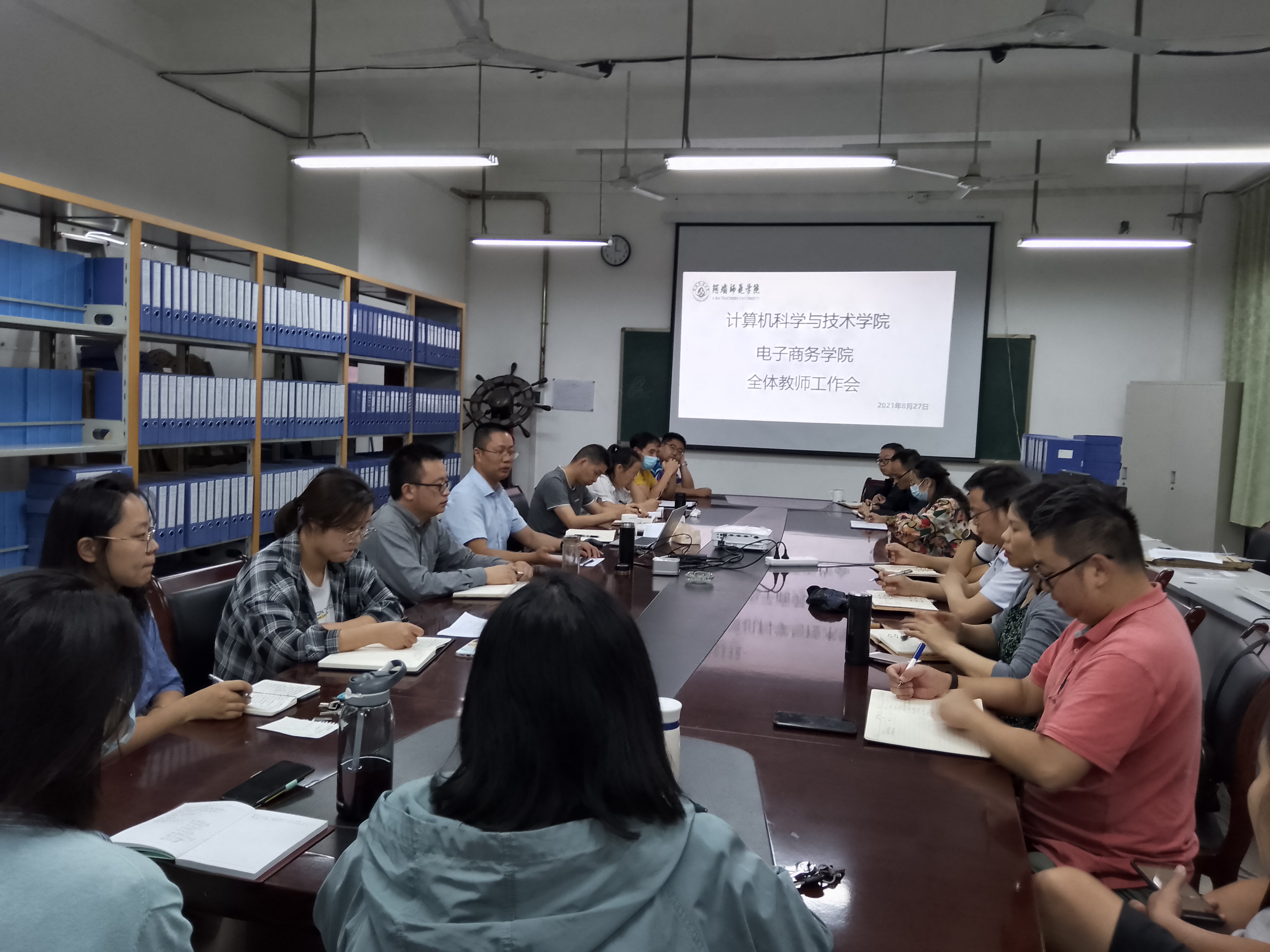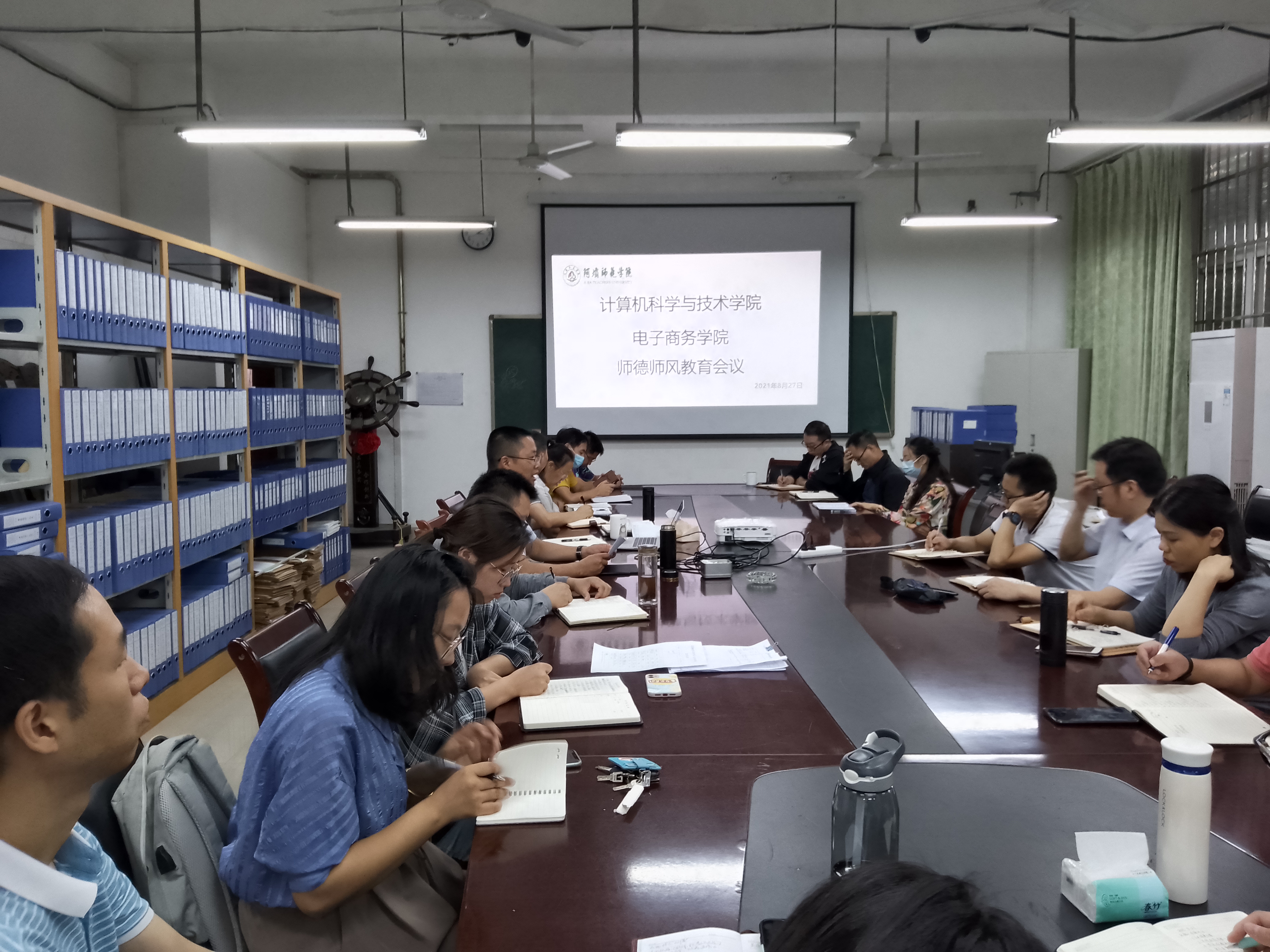 【本网讯】2021年8月27日下午2:30,我院在实验楼B113召开2021-2022第一学期第一次全体教师会议及师德师风教育会议,全体教师参加会议。