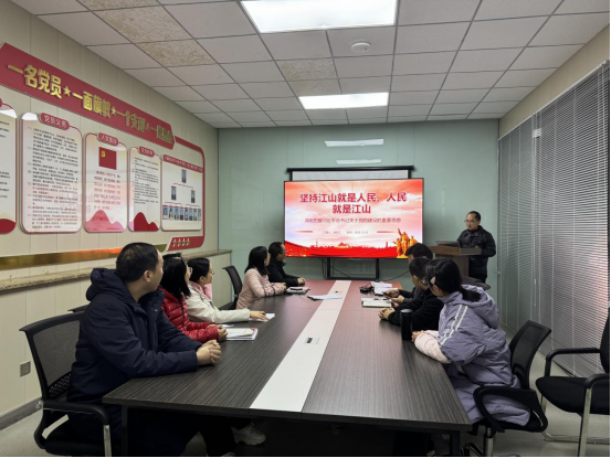 2023年12月13日下午,计算机科学与技术学院第一党支部在会议室开展一场题为“江山就是人民,人民就是江山”的专题党课,本次党课由第一党支部书记刘洪江同志主持。