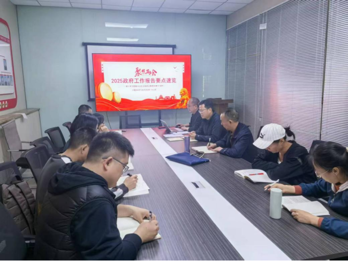 接下来会议重点学习了《2025年政府工作报告》的核心内容,围绕三部分展开:
