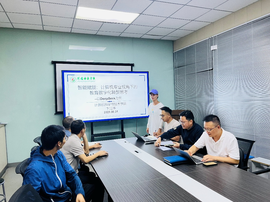 【本网讯】为传达由北京师范大学继续教育与教师培训学院于2025年7月13日-2025年7月19日举办的“阿坝师范学院2025年度骨干教师教育信息技术专题培训高级研修班”相关内容,进一步提升我院在AI赋能教学、信息教育技术相关的能力。2025年08月31日下午,在计算机科学与技术学院(电子商务学院)会议室,由马偲臆、卞江伟、达俊宇三位老师开展了关于“AI赋能数智化的教育转型”的学术报告。我院向昌成副教授、罗南超教授、冉建华教授、各教研室主任、及全体老师参加了本次学术交流。
