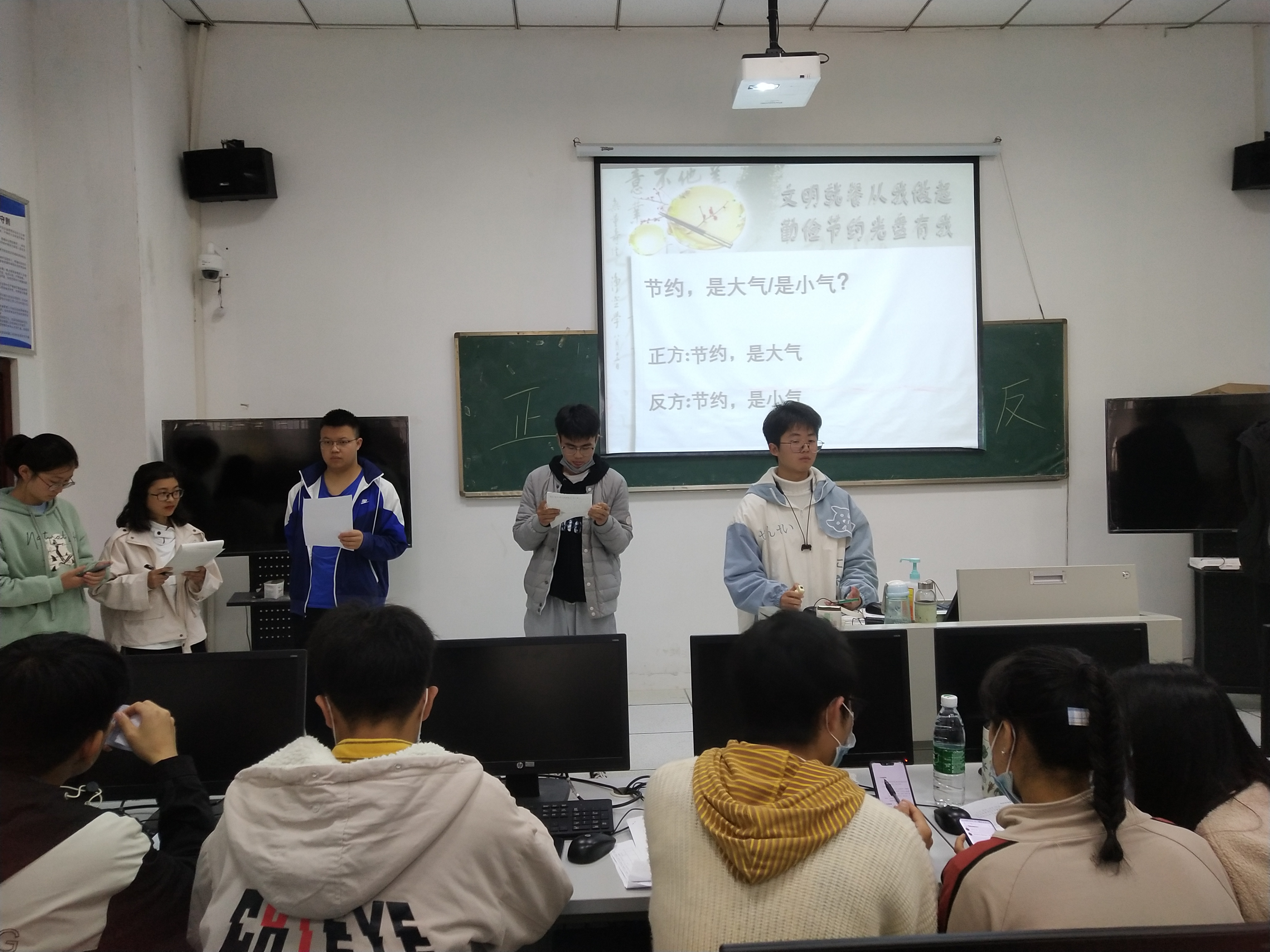 【本网讯】2020年11月10日12:00,为了提倡“厉行节约,反对浪费”的校园风尚,宣传和巩固以节约为荣的思想意识,计算机科学与技术学院在我院实验楼B116举行了院级辩论赛。出席并担任本次比赛的评委有我院学生会各部门部长,参与本次比赛的选手有各班辩论队。