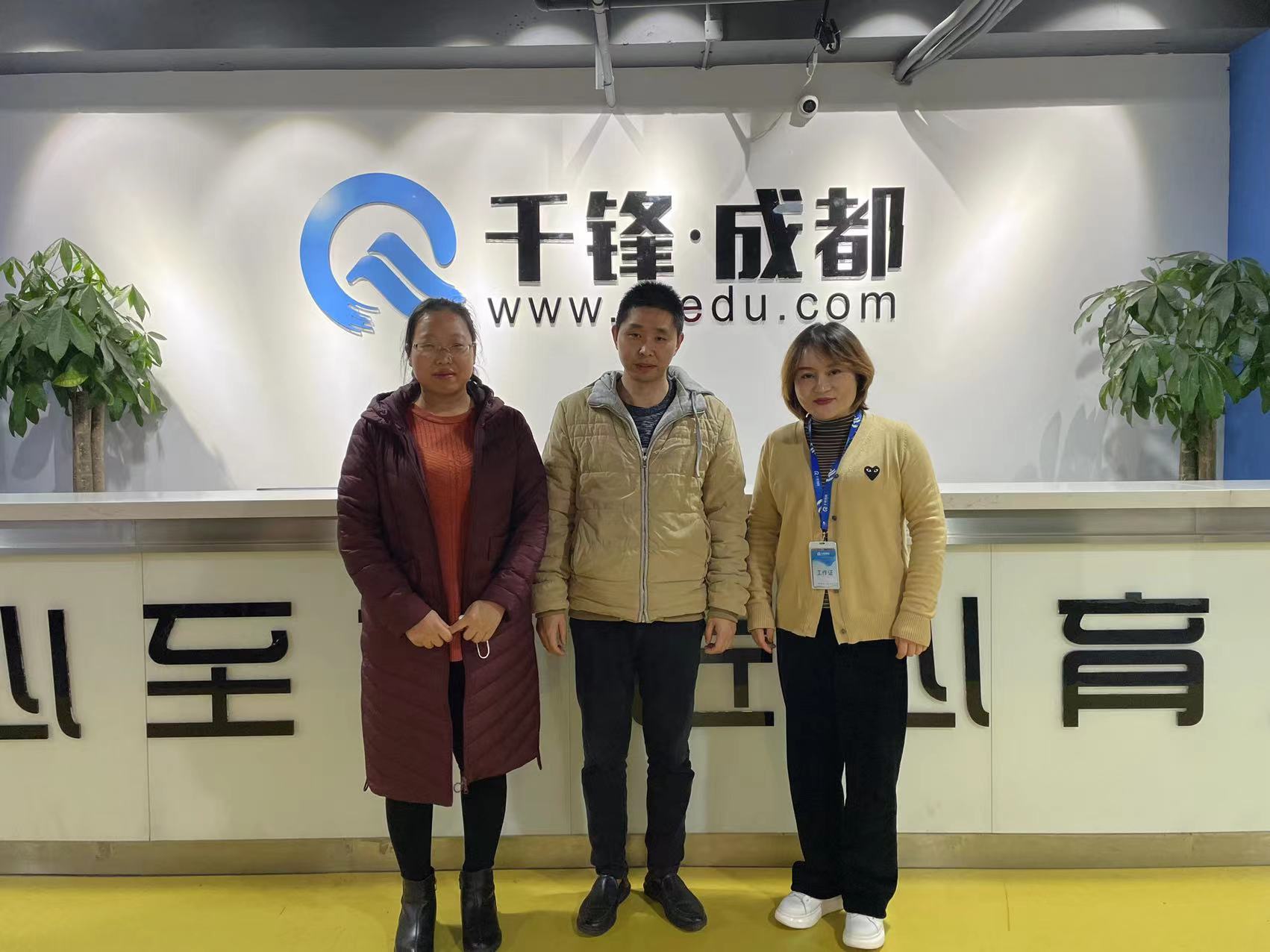 【本网讯】2021年12月8日—9日,计算机科学与技术学院(电子商务学院)教研室主任龚华明老师以及我院双创干事阴躲芬老师一行到位于成都市武侯区肖家河沿街128号肖家河大厦3楼的北京千锋互联科技有限公司成都分公司进行实习基地考察,并看望在此实习的2019级学生,同时检查实训学生的实习情况。