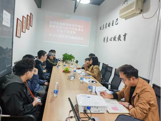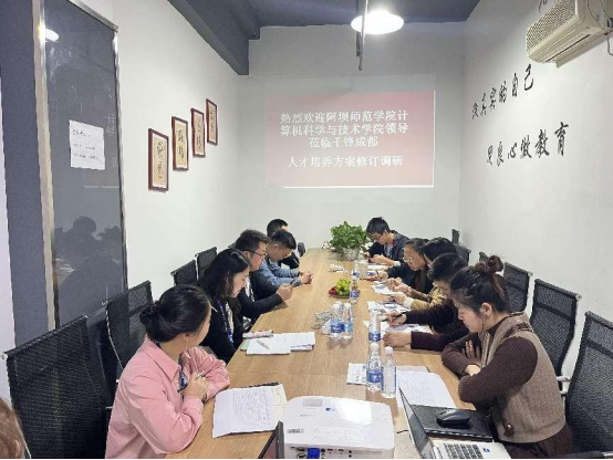 【本网讯】2023年11月2日计算机科学与技术学院(电子商务学院)龚华明教研室主任、李唐辉教科办主任、阴躲芬实习带队老师和负责学生工作的刘华清老师和付家园老师一行到北京千锋互联网科技有限公司(成都分公司)与刘湘等13位同学实习情况进行中期检查和就业宣传。