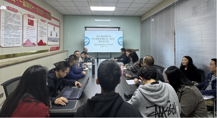 【本网讯】为进一步加强科研诚信建设,根据学校科研工作要求,11月8日下午,计算机科学与技术学院(电子商务学院)在学院会议室召开专题会议,集中学习《四川省科研失信行为调查处理办法》。