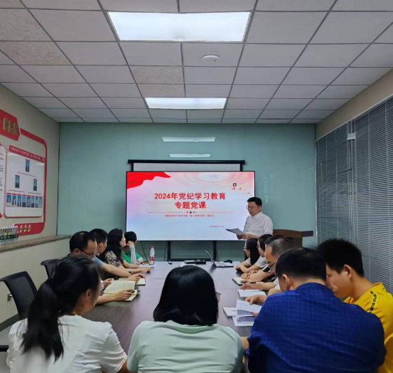 【本网讯】为深入学习贯彻新修订的《中国共产党纪律处分条例》,经党中央同意,自2024年4月至7月,在全党开展党纪学习教育。计算机科学与技术学院(电子商务学院)于2024年6月26日13:00在党员活动室召开了党纪学习教育专题党课。本次专题党课由学院党委副书记(主持工作)罗南超教授主讲,计算机科学与技术学院(电子商务学院)全体教师党员参加。