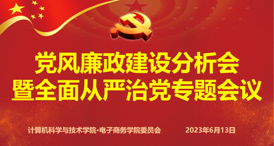 【本网讯】2023年6月14日,计算机科学与技术学院•电子商务学院召开2023年党风廉政建设分析会暨全面从严治党专题会议。此次会议全面贯彻落实习近平新时代中国特色社会主义思想主题教育,分析研判学院党风廉政建设情况。学院党委副书记(主持工作)罗南超主持会议,学院党委全体委员、党政领导班子成员、支部书记、支部纪检委员参加会议。