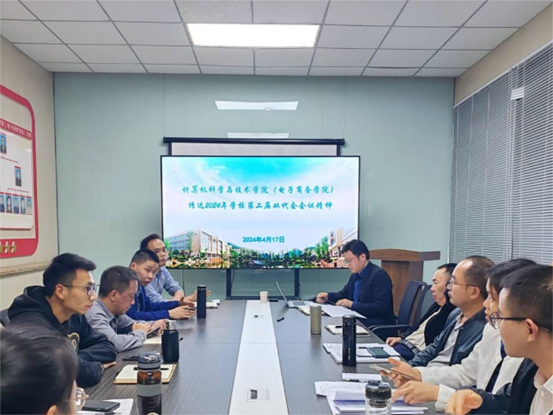 【本网讯】为了传达2024年学校第二届双代会会议精神,方便全院教职工深入学习贯彻落实双代会会议精神,2024年4月17日17:30,计算机科学与技术学院(电子商务学院)在党员活动室召开此次会议,会议由学院党委副书记(主持工作)罗南超主持,全体教职工参加会议。