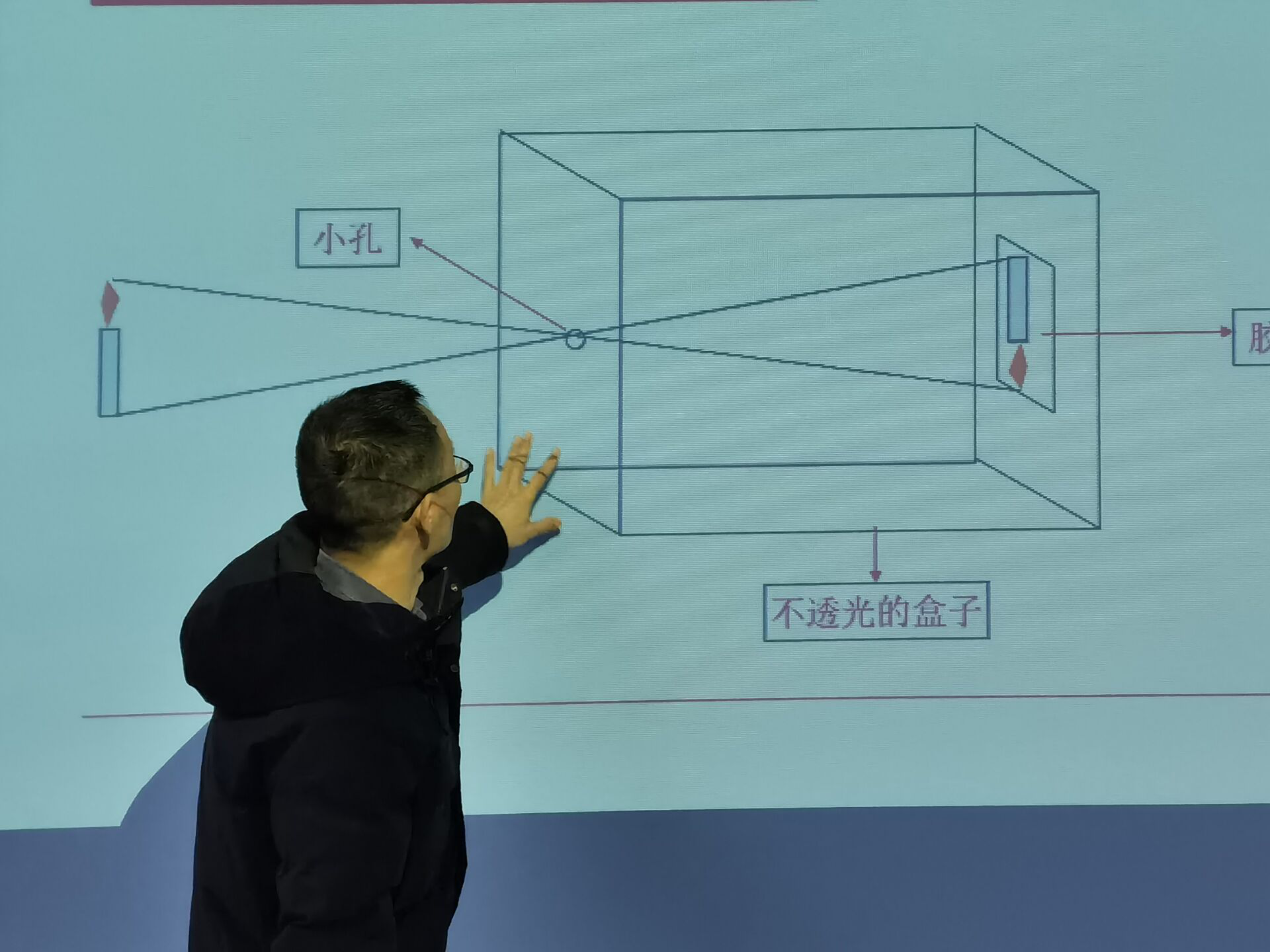 【图一】蹇旭老师正在进行“小孔成像”原理讲解