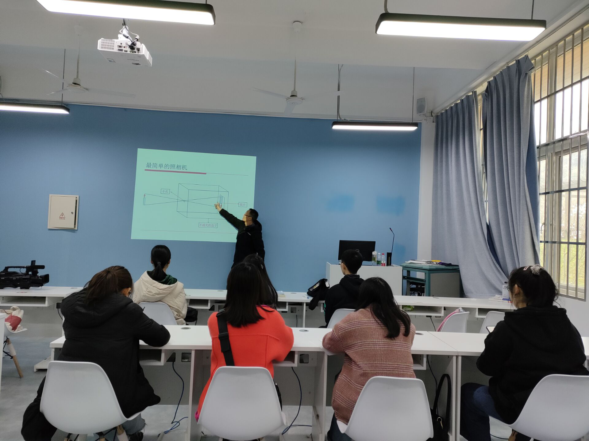 培训伊始,蹇老师向大家讲解了相机原理,让同学们明白了照片是如何形成的,随后蹇老师总结了照相机最基本的系统,告知了大家影响曝光的因素是光圈和快门;然后展示了光圈示意图,并告诉同学们调节光圈大小以及光圈系数的方法,接着同学们还了解了快门结构和光线强弱与快门速度的关系,随后蹇老师又讲解了曝光系统和对焦系统的相关知识,最后,蹇老师拿起摄影机向大家展示了机器的使用方法。至此,本次学习圆满结束。