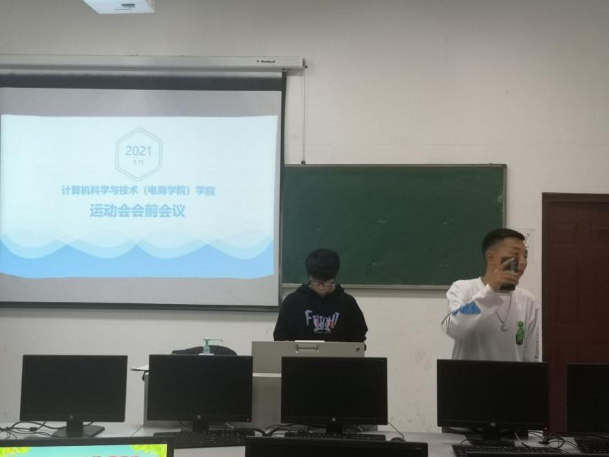 本网讯:2021年5月14日计算机科学与技术学院(电子商务学院)于实验楼B115召开了校运会会前会议。我院两委会主席孟贤杰,体育部部长陆介才里,各班班长、体委均被要求参加此次会议,此外对运动会中趣味项目感兴趣的部分同学也参加了此次会议。