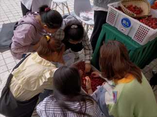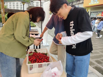 线下主要有校内1个预科学院售卖点和校内电商实训室、美食城、大食堂、快递点4个售卖点,共5个售卖点。线下售卖组同学通过开展趣味小游戏:将奖品卡片隐藏于学校各个角落,游戏参与者在规定时间内交到美食城点位工作人员进行奖励兑换的方式激发全校师生的积极性。购买车厘子的同学们表示,今年车厘子又大又水,红彤彤的着实招人喜欢,车厘子价格也相对较合理,这种助农促农的公益活动既帮助了当地农户,也让我们尝到了本地的美味水果,更促进了我们对本地文化的深刻了解,真是一举多得。