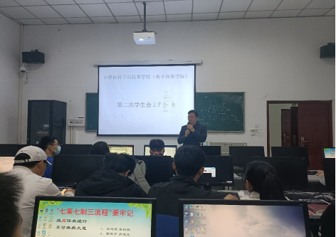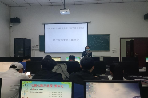 【本网讯】2022年4月13日11:50,计算机科学与技术学院(电子商务学院)学生会全体成员于实验楼B107召开了计算机科学与技术学院(电子商务学院)召开学生会第二次例会,会议由我院辅导员、团委书记刘超老师主持,我院党委副书记罗南超老师、辅导员李明星老师、刘华清老师及院学生会全体同学参加。