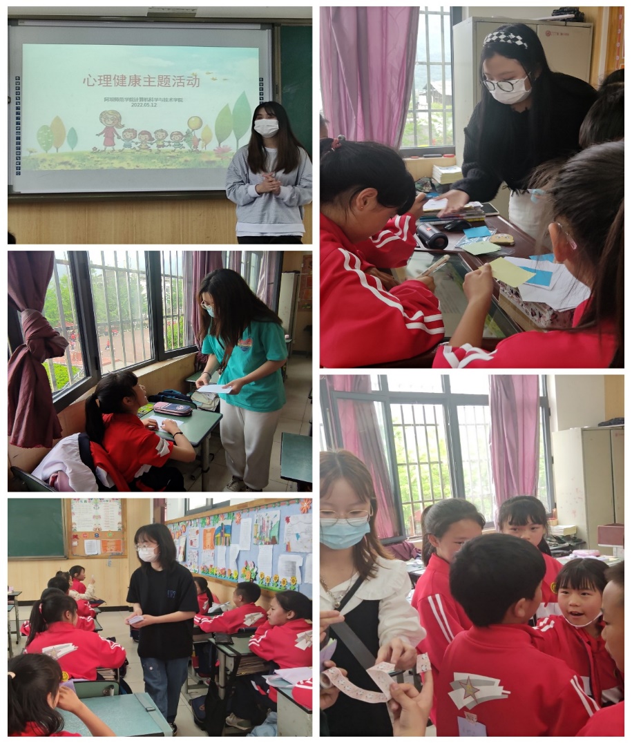 下午4时,我院社会实践团队集合清点好活动物品后,集体前往目的地。在八一小学老师的带领下,实践团队的同学们给八一小学的同学们带去了一堂有趣的心理健康课。本次活动分为两个环节,第一个环节是同学们互相给随机抽到的同学留下一段祝福的话,许多孩子都留言一些善良阳光的祝福语,收到的同学都很开心,达到了心理课分享自己的建议的目的;第二个环节“猜猜我是谁”的小游戏,团队成员将整个班的同学分为了四个小组,让每个小组的同学们猜对方的名字,这需要同学们的互相了解,同时也锻炼了孩子们的观察能力。活动最后为表现优秀的同学颁发了小奖品。这次的活动内容趣味十足,节奏轻松紧凑,整个活动都在实践组同学的策划下有序进行。