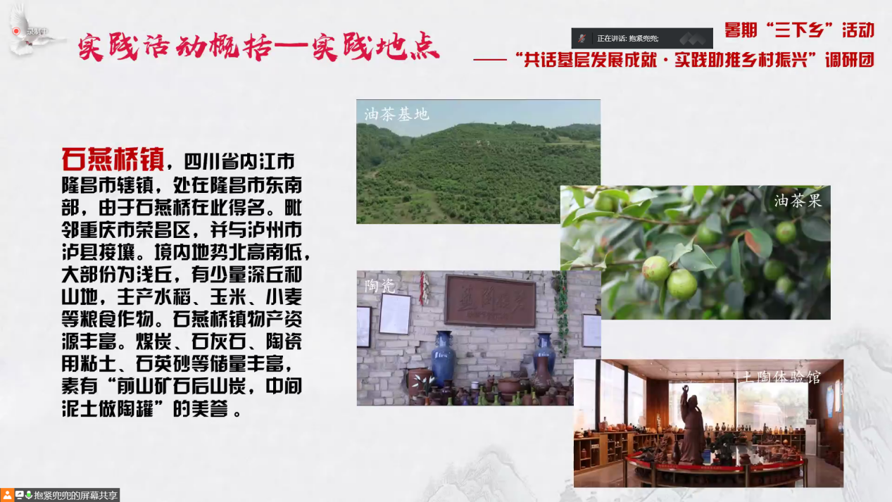 【本网讯】2022年8月28日下午3:00,计算机科学与技术学院(电子商务学院)三下乡“共话基层发展成就·实践助推乡村振兴”调研团开展线上宣讲活动。本次活动的参与者为2021级学生,由三下乡活动成员陈怡主持此次宣讲活动。