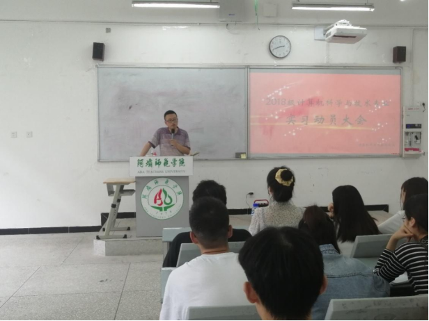 然后计算机科学与技术专业教研室主任龚华明老师,介绍2017级计科专业实习情况,学生们实习情况很好,得到了单位的普遍认可和好评,对阿师院计科学子勤奋踏实感到欣慰,随着疫情阴霾消逝,未来市场和就业需求会变得很大,同学们做好实习就业准备。接着向同学们讲解即将开启的毕业论文开题注意事项,和相关准备工作。同时,介绍了毕业条件等相关事宜。