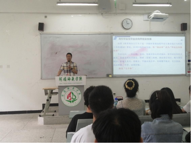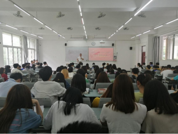 紧接着学院党总支书记黄成兵老师,黄老师简单介绍了实习是就业的先导条件,大学生在校学习、社会实践、专业实习等教学活动落脚点即为就业,找到适合自己的工作岗位。同时介绍了大学生就业方向和形式,为同学们就业拓宽了思路和渠道。