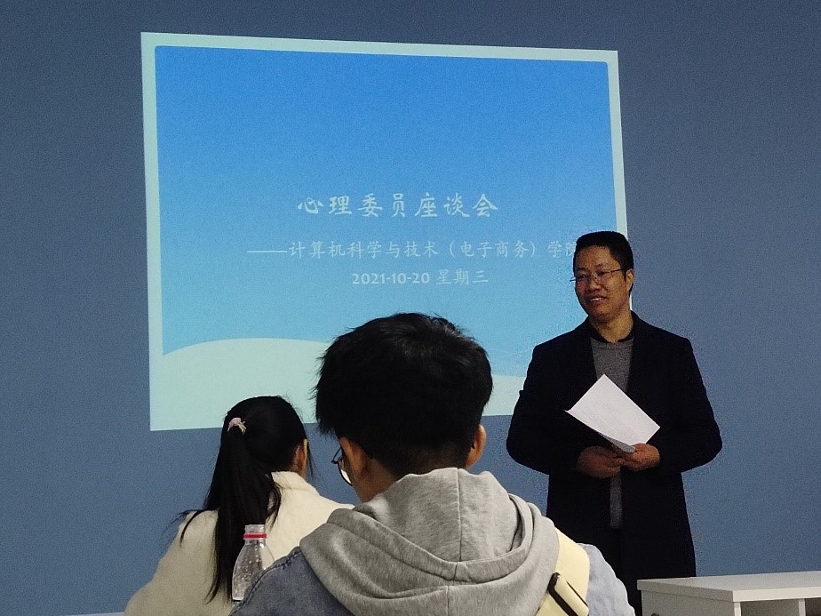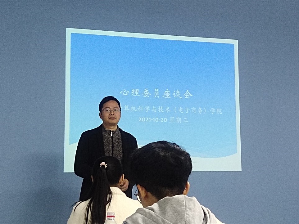 【本网讯】2021年10月20日16:30,计算机科学与技术学院(电子商务学院)于实验楼B107教室举办心理委员座谈会。参与本次座谈会的有我院党总支副书记黄成兵教授,支部书记罗南超教授,辅导员李明星老师、刘超老师以及我院各班心理委员。