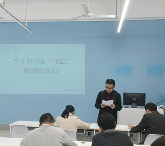 【本网讯】2022年4月13日下午,我院在实验楼107计算机科学与技术学院(电子商务学院)开展学习《四川省“十四五”教育事业规划》及本科预评估反馈整改活动,此次会议由我院院长向昌成老师主持,全体教职员工参加。