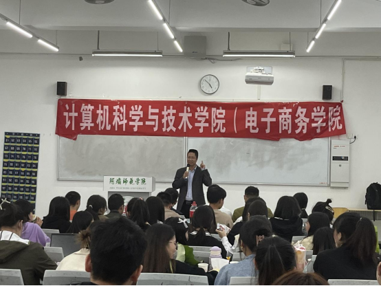 根据学院入学教育安排,下午由计算机科学与技术专业和电子商务专业教研室主任为新同学进行了专业导学。龚华明和许耿分别从专业课程、职业规划、考公考研、创新创业和就业等同学们关注的问题进行了悉心指导。