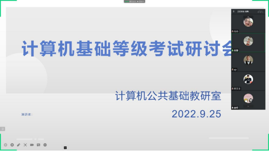 【本网讯】2022年9月25日下午2点30分,计算机公共教研室主任符红霞在腾讯会议召开了关于计算机等级考试的研讨会,邀请了李唐辉、邵莉、冉建华、刘洪江、孙丹、邓世垠、阴躲芬、袁瑶瑶、王玉晶、吴文丰、高攀、席梦龙共12位担任《计算机基础》课程的教学教师参会,会议的主题有两个:一是分析计算机一级、计算机二级等级考试过级率有所下降原因?二是针对目前这种情况,有什么样的措施进行改进。
