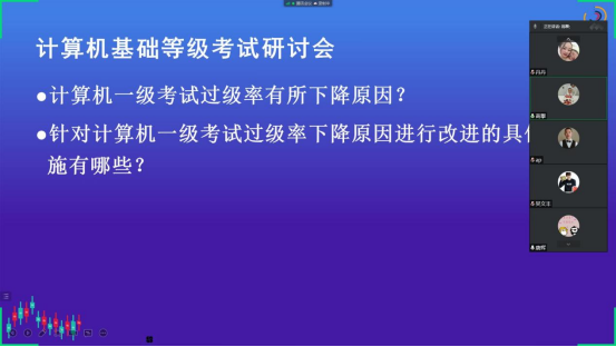本次计算机等级研讨会上,各位计算机基础任课老师的积极发言,分析目前计算机等级报考人数下降、过级率也有所下降的原因,针对这些原因也提出的对应的改进方法。
