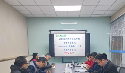 【本网讯】2022年11月16日下午16时,为了对前期教育教学工作进行总结以及为下一阶段工作进行部署,计算机科学与技术学院(电子商务学院)在无人机会议室召开教学工作会议。出席本次会议的有计算机科学与技术学院(电子商务学院)的全体老师,会议由向昌成院长主持。