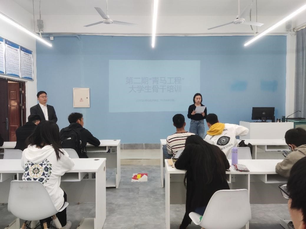 【本网讯】为深入实施“青年马克思主义者培养工程”,扎实开展“学党史、强信念、跟党走”学习教育活动,提高学生干部 的理论素养、研究能力和实践水平,根据《中共阿坝师范学院委员会团委文件》要求,结合我院工作实际情况,特此开办计算机科学与技术学院(电子商务学院)第二期“青马工程”大学生骨干培训班。开班仪式于2022年4月21日12:30实验楼B107举行,我院党委副书记罗南超,辅导员刘超老师主持此次会议。