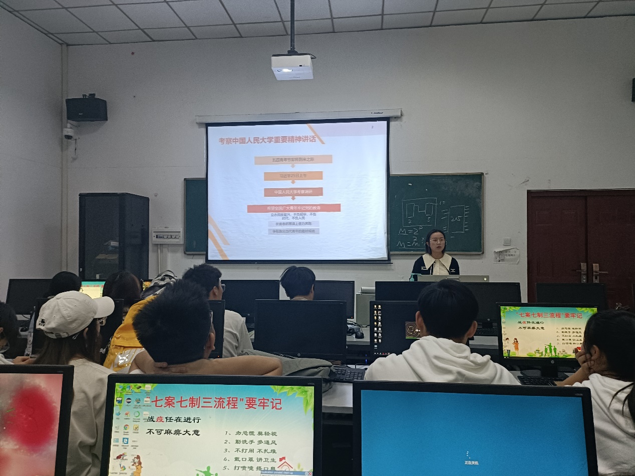 【本网讯】2022年5月4日11:50,计算机科学与技术学院(电子商务学院)辅导员刘超老师于实验楼B114教室开展学习习近平总书记考察中国人民大学重要讲话精神和给冰雪健儿回信精神的主题团课