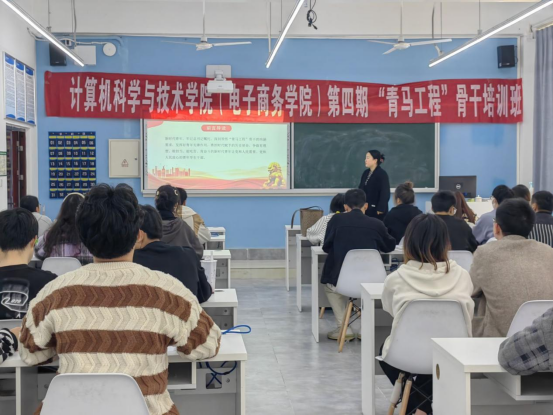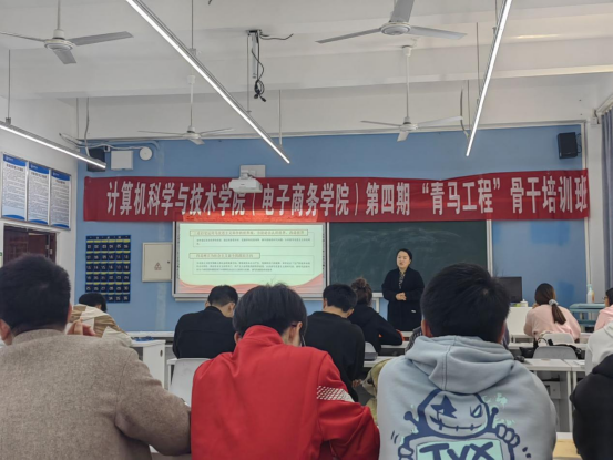 【本网讯】为了培养一批信仰坚定、能力突出、素质优良的青年政治骨干,为党的事业注入新的活力。2024年4月1日12:30计算机科学与技术学院(电子商务学院)在实验楼B107举行第一次青马工程培训。此次培训由刘静老师主持,全体青马工程学员参加培训。