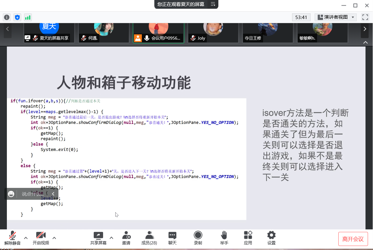 【图十九】刘红滟老师做人物推箱子功能设计与实现讲座