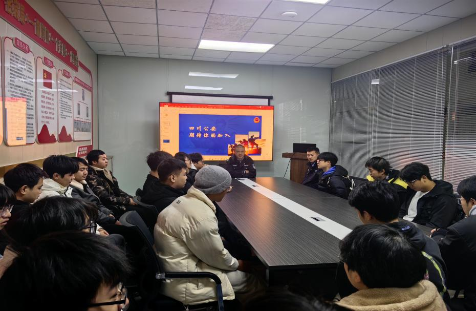 【本网讯】1月2日,计算机科学与技术学院(电子商务学院)邀请凉山州公安局熊政委一行3人,针对计算机科学与技术学院2025届毕业生开展四川省公安机关特殊人才招录宣讲答疑座谈。此次活动旨在帮助公安机关吸引和选拔具有专业技能的优秀人才,以加强公安队伍建设,同时为计算机科学与技术学院有意愿报考公安机关网络安全技术岗的同学们答疑解惑。