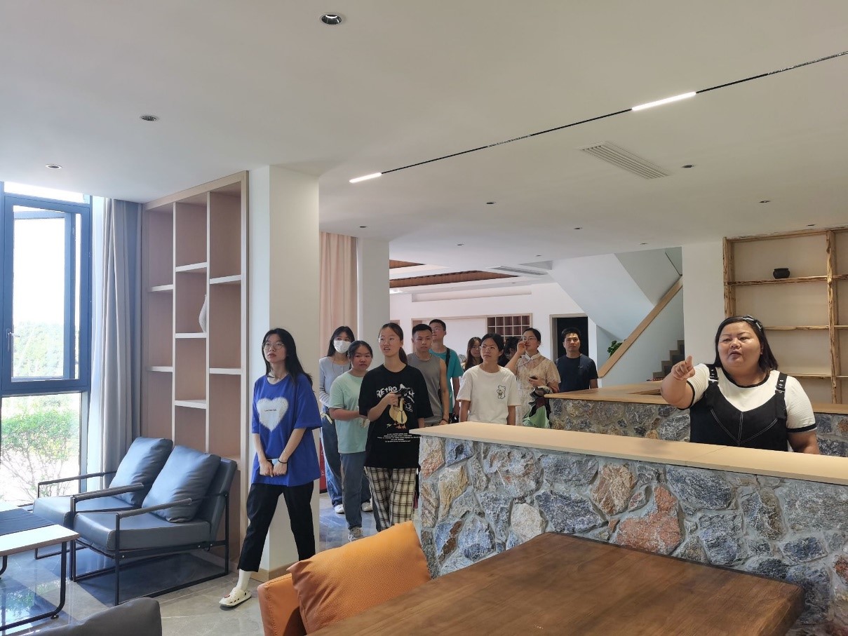 净土村通过油茶种植已经实现了产业振兴,并开始着力弘扬油茶文化,构建田园乡村。团队随后跟随自玉仙书记前往净土村试点民宿陶然茶居调研。民宿独特的选址位置,优美的地理环境,让我们感受到远离城市喧嚣,独往诗和远方的自由闲适之感。自玉仙书记讲到乡风文明建设助推乡村产业,净土村今天的成就离不开老百姓对这片土地的热爱。交谈中我们了解到自玉仙书记来自云南大理,今天却扎根在净土村,奉献为净土村,我们相信自书记对这片土地也同样爱的深沉。