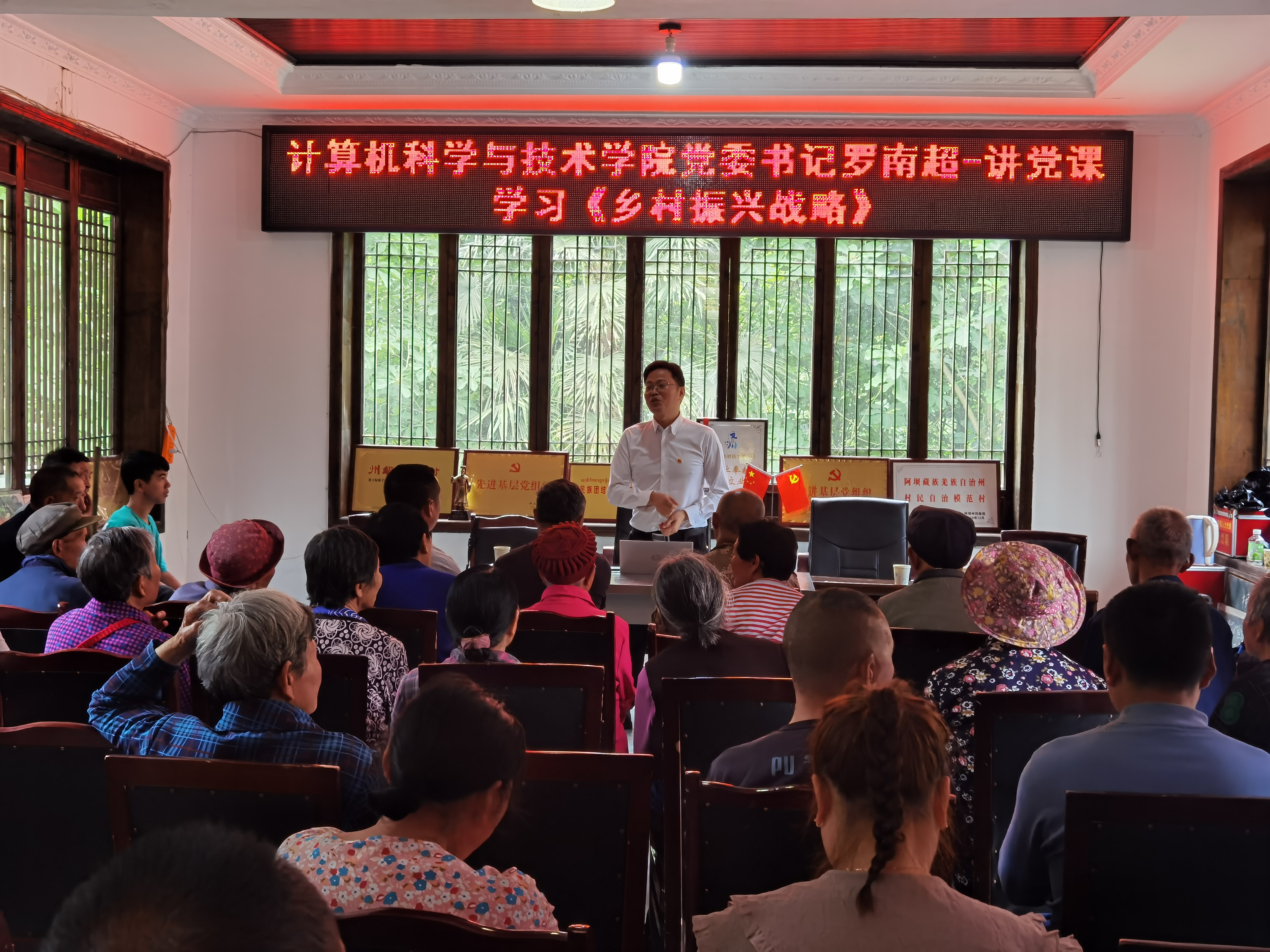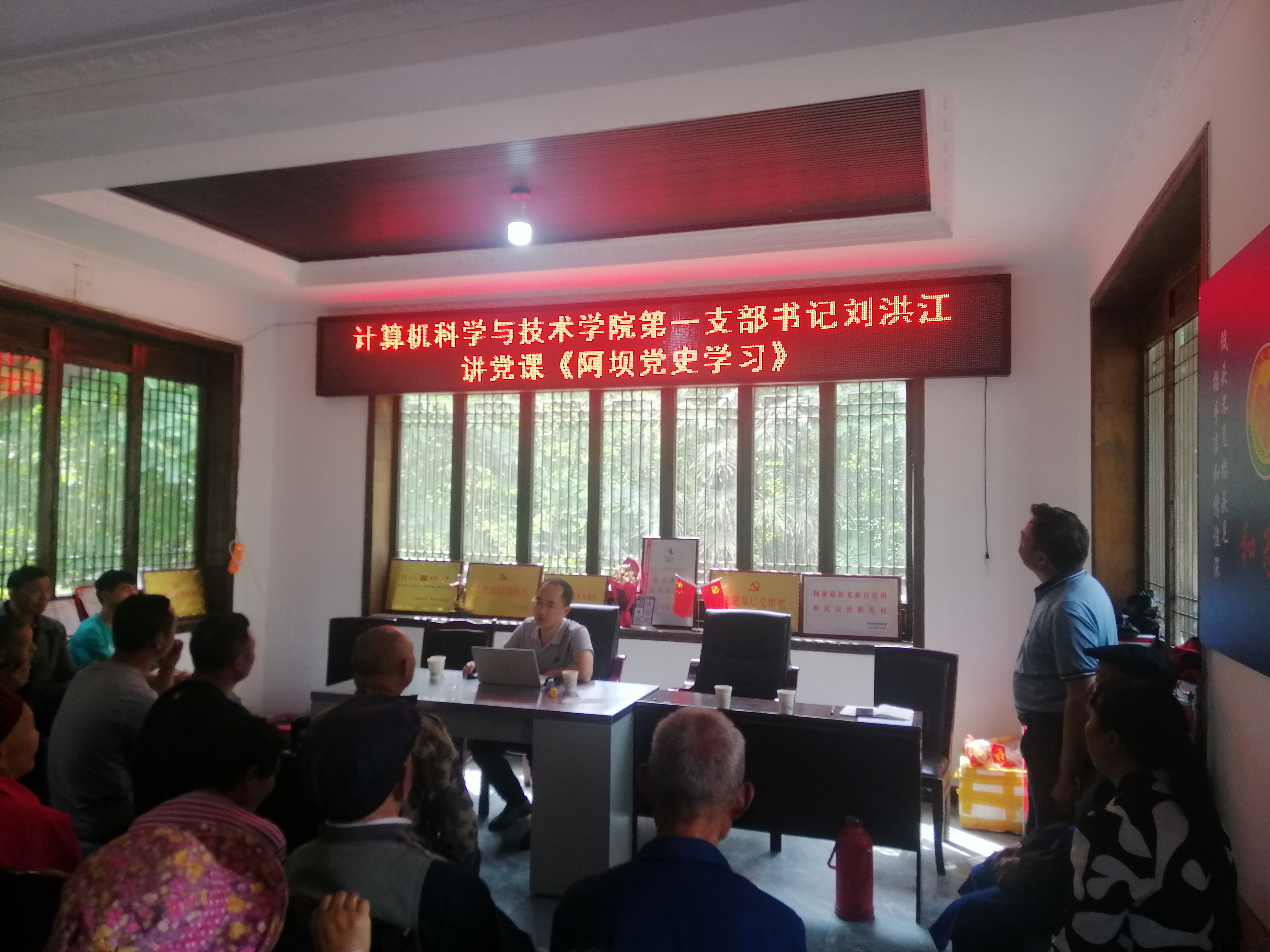 【本网讯】2021年6月17日上午,计算机科学与技术学院(电子商务学院)党委副书记罗南超同志和第一支部书记刘洪江同志在水磨镇牛塘沟村村委会办公室给牛塘沟村的党员同志和部分村民开展党课培训。