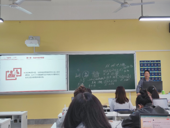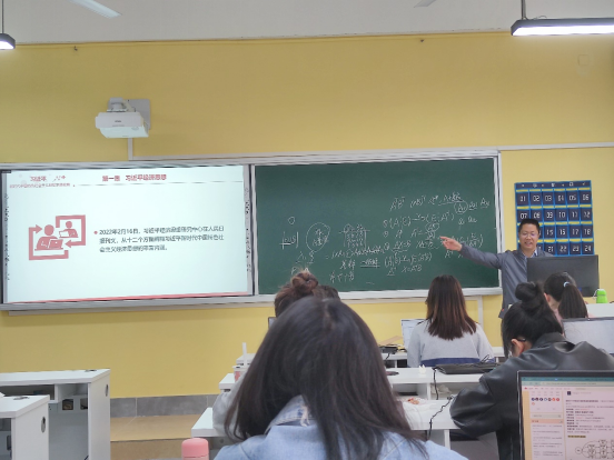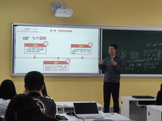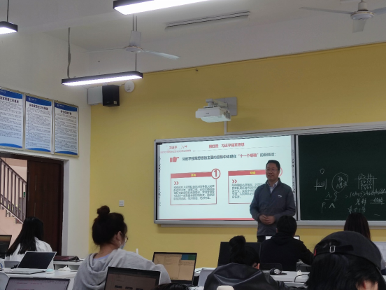 【本网讯】为深入学习贯彻习近平新时代中国特色社会主义思想,作好第四期党员发展对象、预备党员培训工作,2023年5月24日中午,计算机科学与技术学院(电子商务学院)党委副书记、副院长黄成兵教授在实B107为党员发展对象、预备党员、入党积极分子,作了题为“学思想、强党性、重实践、建新功,习近平新时代中国特色社会主义思想”的主题党课培训。他深入阐述了习近平新时代中国特色社会主义思想的重要性,并提到了一个发展理念与七个坚持、习近平法治思想的十一个坚持、习近平生态文明思想的六个原则等内容。