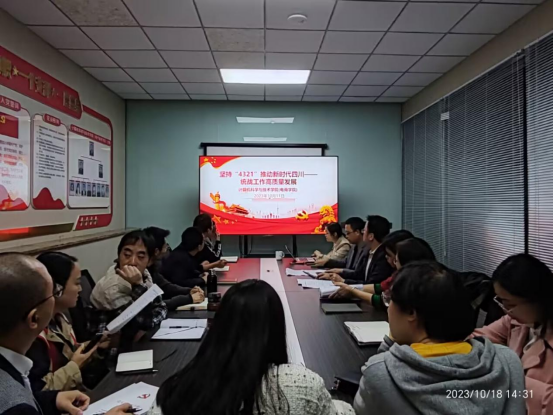 【本网讯】为深入学习宣传贯彻党的二十大精神和中央,省委系列重大决策部署,计算机科学与技术学院(电子商务学院)于2023年10月11日14:30在会议室党员活动室召开“坚持‘4321’推动新时代四川—统战工作高质量发展”会议,我院老师都积极参与其中并展开激励讨论。
