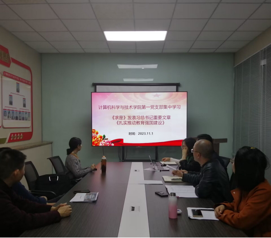 【本网讯】2023年11月1日下午,计算机科学与技术学院第一党支部在会议室召开党员大会,会议有两项内容:集中学习了《求是》杂志发表习近平总书记重要文章《扎实推动教育强国建设》和支委换届,本次会议由学院第一党支部书记刘洪江主持,第一支部全体党员参加。