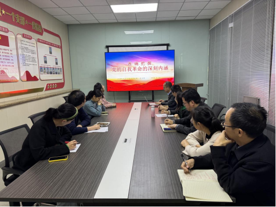 党支部书记刘洪江同志从本质属性、目标指向、历史脉络和时代要求分别介绍了党的自我革命的深刻内涵。习近平总书记在2017年2月省部级主要领导干部学习贯彻党的十八届六中全会精神专题研讨班上的重要讲话中指出,“我们党作为一个具有九十五年多历史、执政六十七年多的马克思主义政党,如何保持革命精神是一个十分重大而又必须解决好的课题”。这一重大论断深刻揭示了自我革命是马克思主义政党的本质属性,回答了党的自我革命的本源性问题。习近平总书记指出,“先进性和纯洁性是马克思主义政党的本质属性,我们加强党的建设,就是要同一切弱化先进性、损害纯洁性的问题作斗争,祛病疗伤,激浊扬清”“四十年管党治党的经验深刻昭示我们:必须不断进行自我革命,同一切影响党的先进性、弱化党的纯洁性的问题作坚决斗争,实现自我净化、自我完善、自我革新、自我提高”。习近平总书记深刻揭示了跳出历史周期率两个答案的辩证关系,强调“一百年来,党外靠发展人民民主、接受人民监督,内靠全面从严治党、推进自我革命,勇于坚持真理、修正错误,勇于刀刃向内、刮骨疗毒,保证了党长盛不衰、不断发展壮大”。要深刻认识两个答案一脉相承的历史逻辑,准确把握自我革命与人民监督的辩证统一关系,在两者相互促进、贯通融合中将党锻造得更加坚强有力。习近平总书记强调,解决好大党独有难题,“是实现新时代新征程党的使命任务必须迈过的一道坎,是全面从严治党适应新形势新要求必须啃下的硬骨头”。从根本上讲必须发扬彻底的自我革命精神,把全面从严治党作为党的长期战略、永恒课题,把严的基调、严的措施、严的氛围长期坚持下去,把党的伟大自我革命进行到底。刘洪江同志强调:全体党员同志要保持清醒头脑,增强政治定力,坚定理想信念,牢记初心使命;要敢于直面问题,勇于刀刃向内,自觉清除思想上的灰尘和心灵上的污垢;要坚持以人民为中心的政治立场,深入师生开展调查研究,及时为师生排忧解难;要坚持“三省吾身”,始终保持清醒的头脑,守住“底线”、不碰“红线”;党的自我革命是一项长期而艰巨的任务,需要全体党员共同努力。每个党员都应该时刻保持警醒和自我约束能力,不断加强自身建设并发挥先锋模范作用。